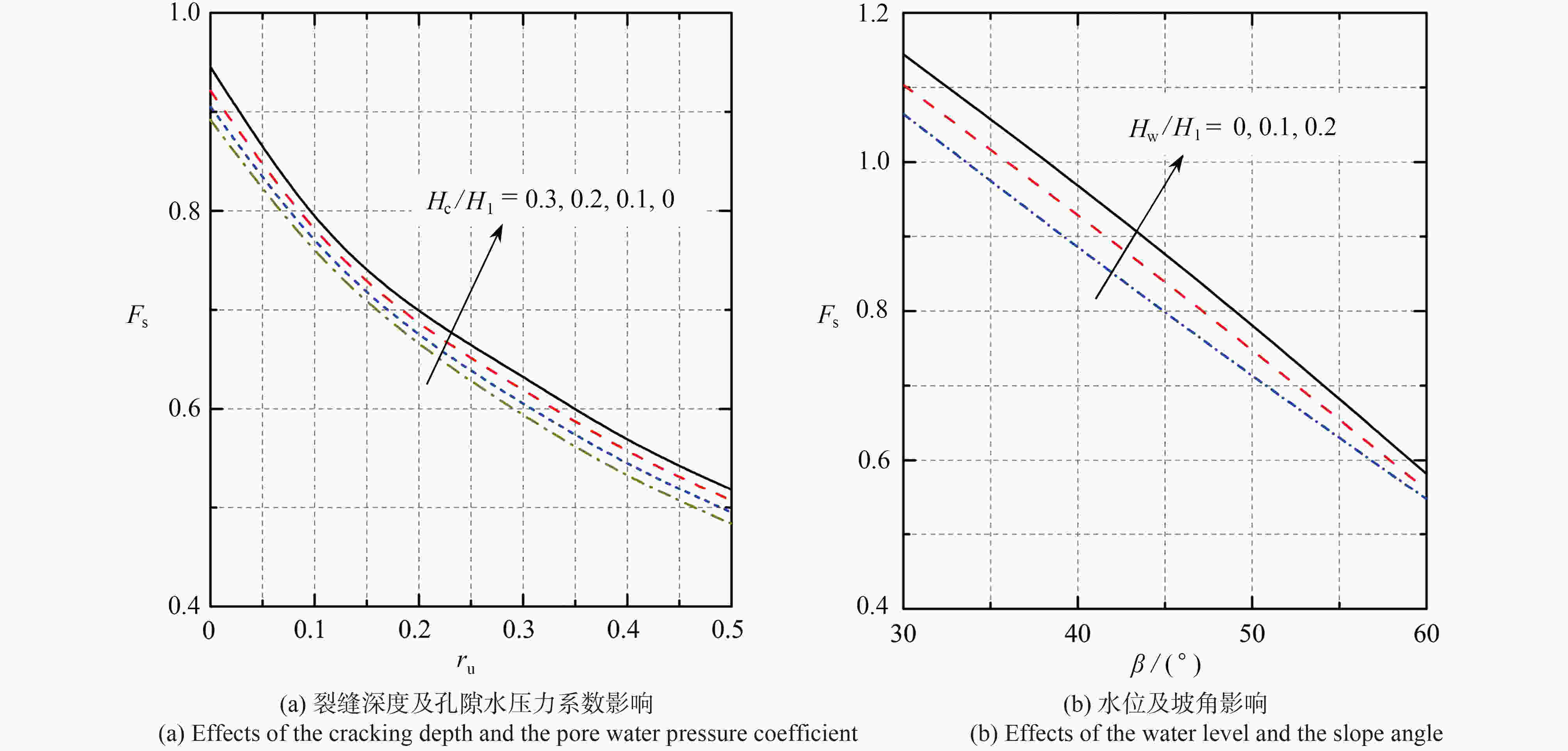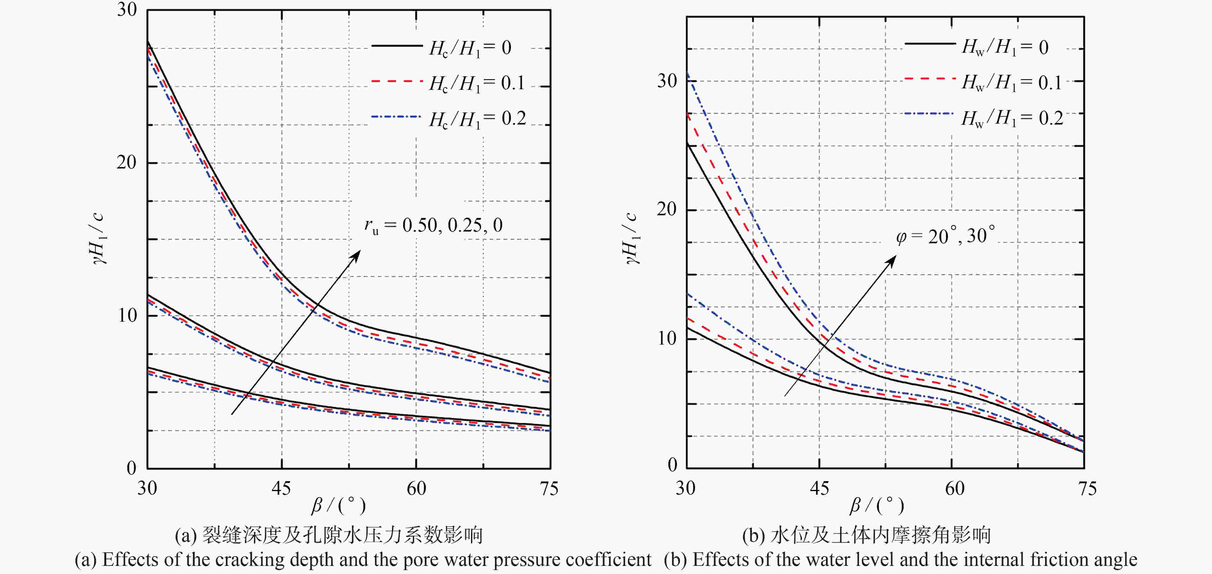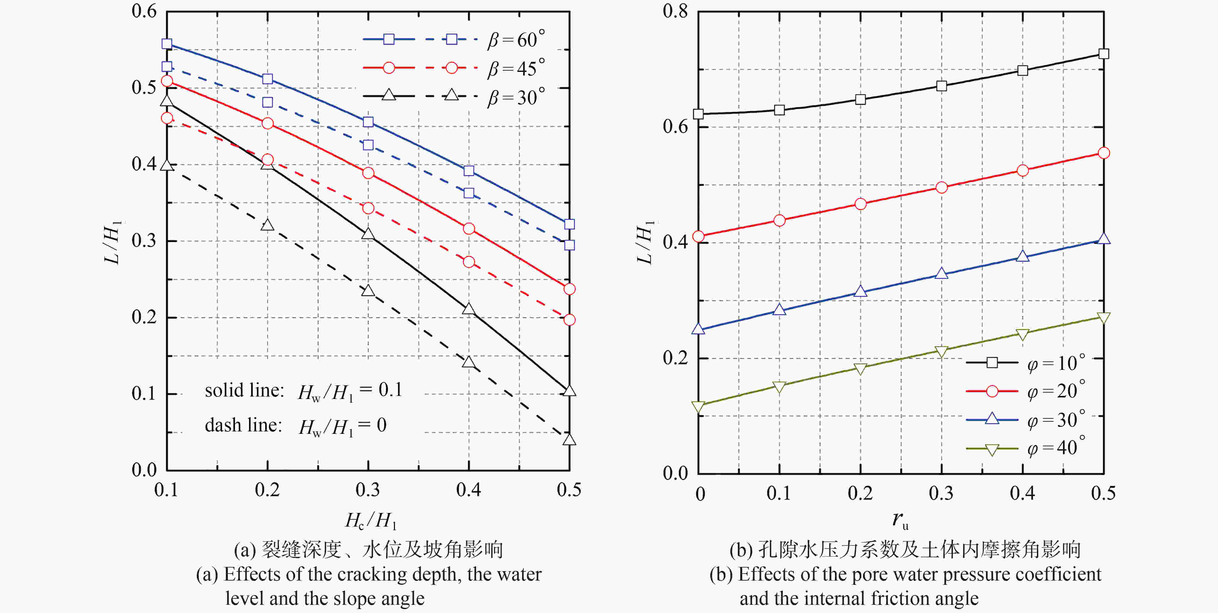研究了孔隙水压力作用下隧道洞口段含裂缝仰坡的稳定性。采用极限分析上限法,构建了坡顶含竖向裂缝的对数螺旋转动破坏机制,推导了可反映边坡临界坡高的稳定系数计算公式,将计算结果与未考虑孔隙水压力作用下的含裂缝边坡稳定性极限分析结果进行对比,验证了所提研究方法的合理性。通过算例分析,研究了坡顶裂缝最不利位置分布及仰坡整体安全系数。结果表明:坡顶裂缝开裂深度、土体内摩擦角、坡角越大及水位分布越浅,裂缝位置越靠近坡顶边缘处;孔隙水压力系数、坡顶裂缝开裂深度越大,仰坡稳定性系数越小;坡顶裂缝越深、孔隙水压力系数越大、边坡越陡,越不利于仰坡稳定;而坡内水位分布越低,越有利于仰坡稳定。