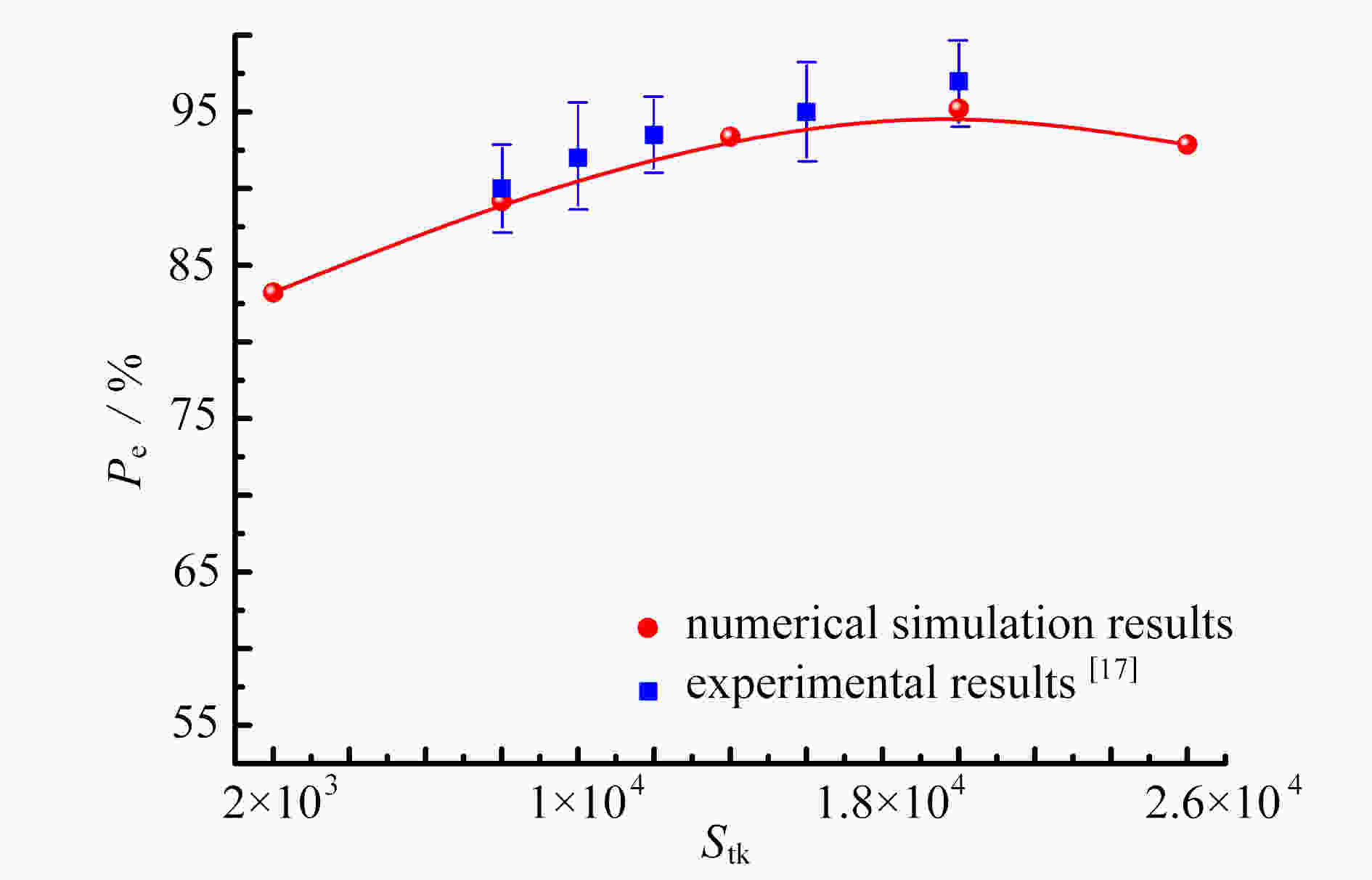 针对在Reynolds数Re=3000 ~ 50000、Stokes数Stk=0.1 ~ 10、Dean数De=1400 ~ 2800的情况下,长径比β=2 ~ 12的圆柱状颗粒流经弯管湍流场时的取向与沉积特性进行了研究。圆柱状颗粒的运动采用细长体理论结合Newton第二定律进行描述,取向分布函数由Fokker-Planck方程给出,平均湍流场通过求解Reynolds平均运动方程结合Reynolds应力方程得到,作用在颗粒上的湍流脉动速度由动力学模拟扫掠模型描述。通过求解湍流场以及颗粒的运动方程和取向分布函数方程,得到并分析了沿流向不同截面和出口处颗粒的取向分布,讨论了各因素对颗粒沉积特性的影响。研究结果表明,随着Stk和颗粒长径比β的增加、De和Re的减少,颗粒的主轴更趋向于流动方向。颗粒的沉积率随着De,Re,Stk和颗粒长径比的增大而增加,所得结论对于工程实际应用具有参考价值。
